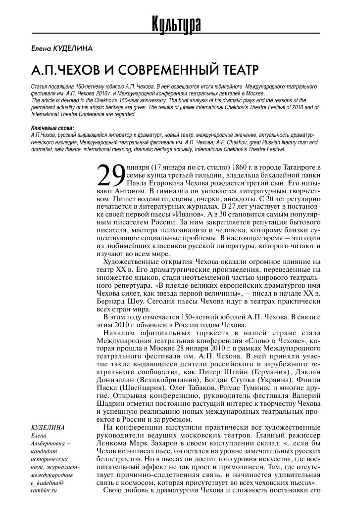 - Камеральная сцена как идеальное пространство для Чехова