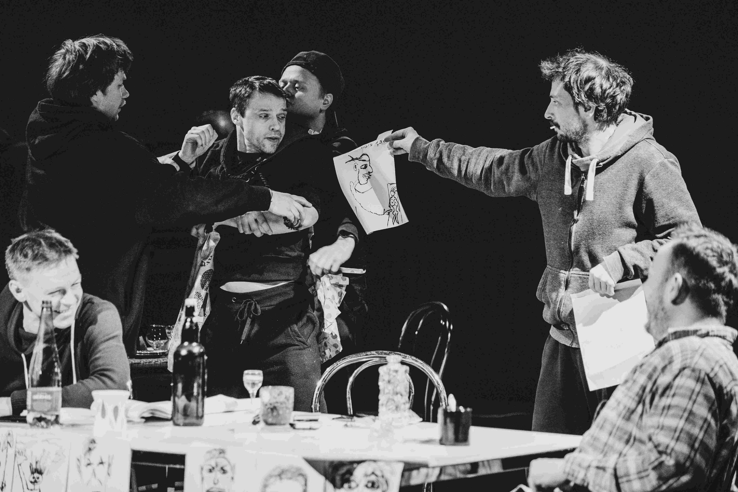 Пьеса «Просвещенные» показывает героев, которые через протест и бунт пытаются найти смысл и справедливость в мире, где абсурд царит. В центре сцен — пытки и борьба за свободу, что подчеркивает, что даже в безнадежных ситуациях человек способен бороться за свои идеи.